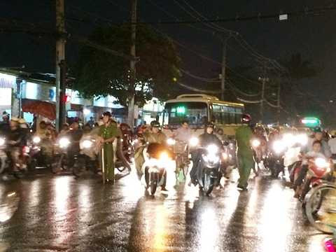 Nhận tin báo, lực lượng công an phường, bảo vệ dân phố và dân phòng cùng xuống đường điều tiết giao thông dưới cơn mưa mỗi lúc một nặng hạt. Một số bảo vệ dân phố được phân công từ xa, hướng dẫn người dân nên di chuyển vào tuyến đường khác hoặc hẻm nhỏ để thoát ùn tắc.