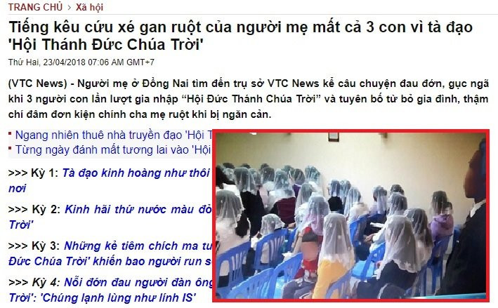 Giữa tháng 4/2018, VTC News là tờ báo phát hiện và đăng tải những bài viết đầu tiên về sự bất thường của một nhóm người sinh hoạt tôn giáo trái phép mang tên Hội Thánh Đức Chúa Trời Mẹở Hải Phòng.