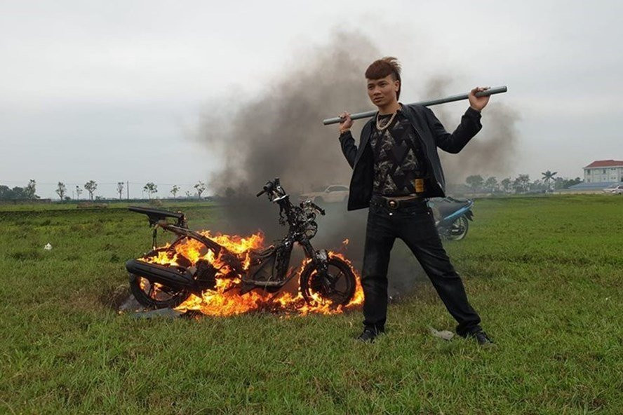 Khá "Bảnh" đập nát rồi châm lửa đốt xe máy trị giá 70 triệu đồng để đổi xe điện.