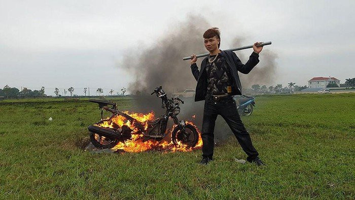 khá bảnh đập phá đốt xe