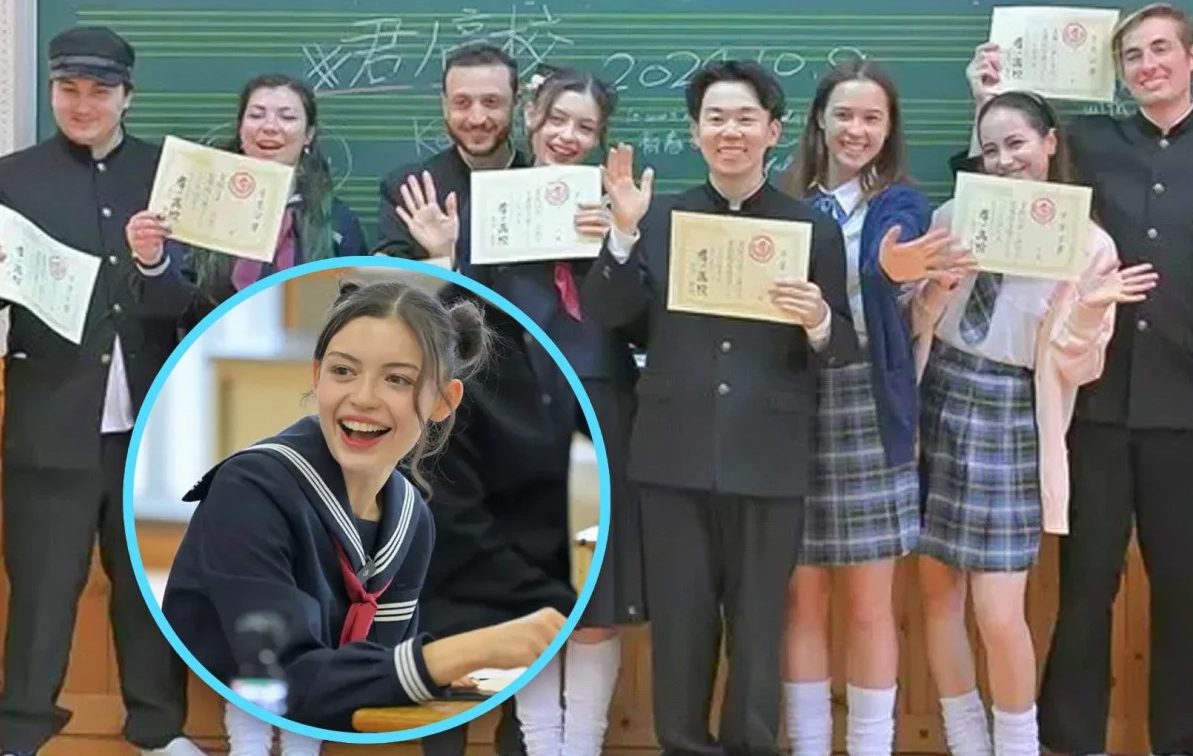 Du khách có thể chọn mặc đồng phục thủy thủ cổ điển của Nhật Bản hoặc bộ vest truyền thống trong buổi lễ khai giảng. Sau đó, họ được phân vào các lớp học khác nhau và viết thư pháp trong tiết học tiếng Nhật.