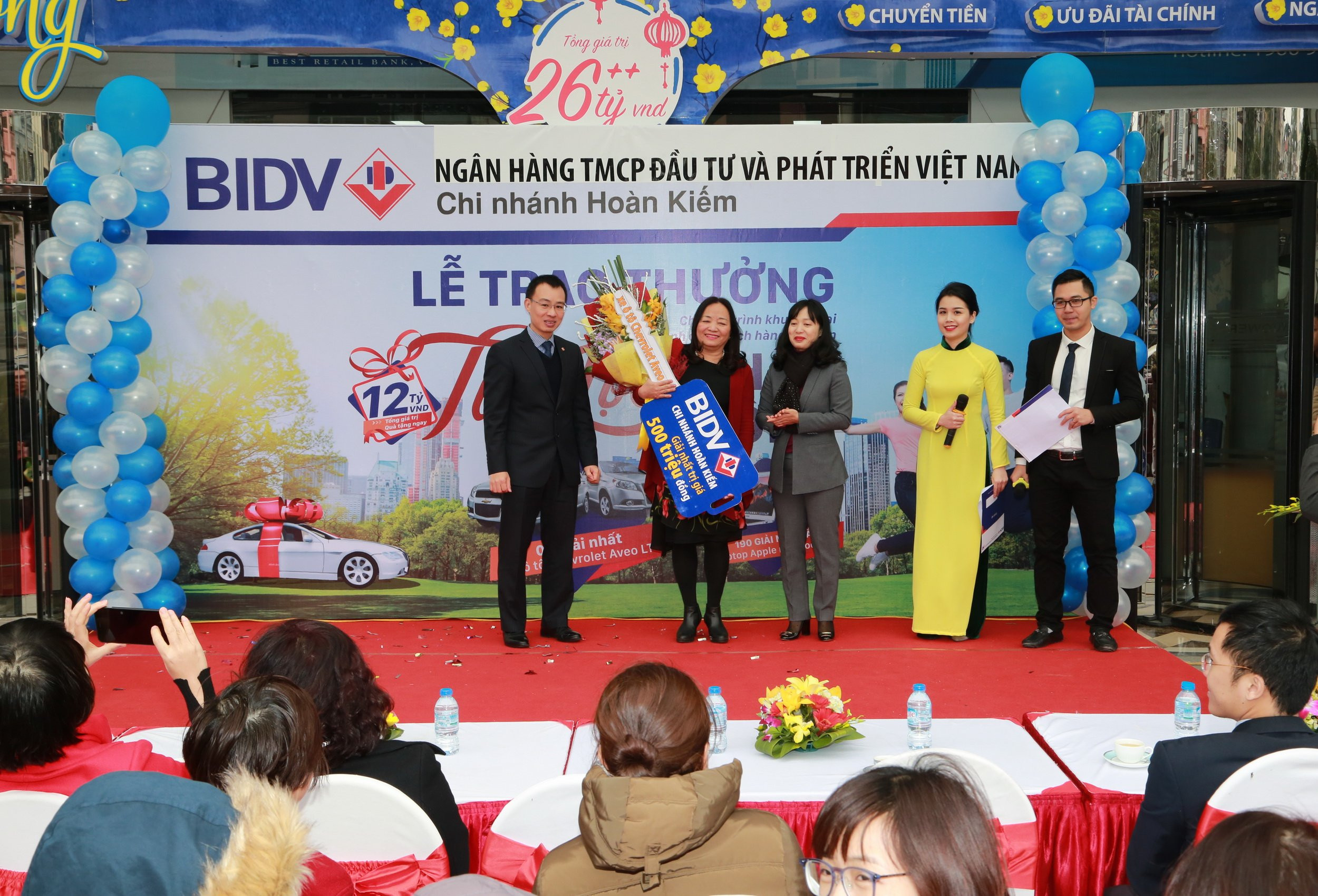 Theo đó, BIDV đã trao 1 trong 2 giải Nhất, mỗi giải là 1 xe ô tô Chevrolet Aveo LT cho bà Võ Thị Hồng Minh, khách hàng của BIDV Chi nhánh Hoàn Kiếm.