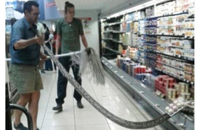 Sự việc xảy ra ở siêu thị Spar, thuộc thị trấn Komatipoort, tỉnh Mpumalanga, Nam Phi. Theo đó, người phụ nữ đang đi mua sắm trong siêu thị thì bắt gặp con trăn dài 3,7 m đang ẩn náu trong dàn tủ lạnh bày sữa khiến cô hoảng hồn khiếp sợ.