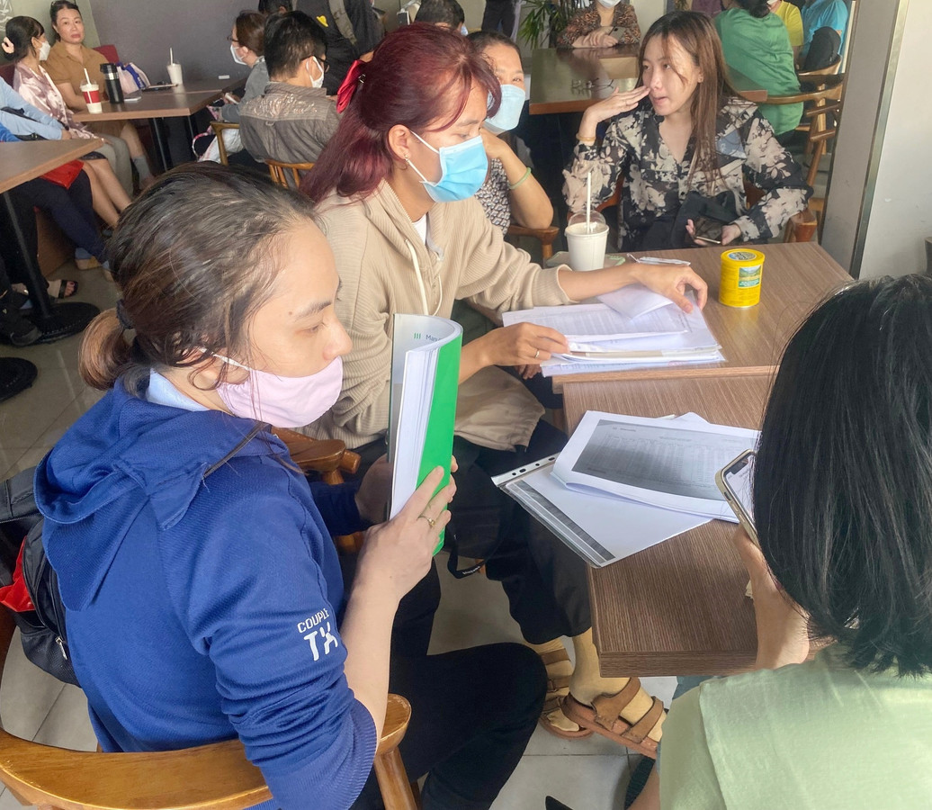 Hàng trăm khách hàng tại TP.HCM gửi đơn tố cáo sản phẩm Tâm An Đầu Tư của Công ty Manulife và Ngân hàng SCB lên Cơ quan điều tra. (Ảnh: Đại Việt)