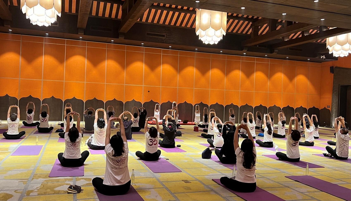 Khách hàng tham gia hoạt động định tuyến trong tư thế Yoga & Thở với chuyên gia Ấn Độ.