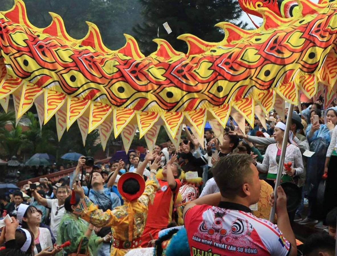 Tiết mục tung tiền của các nghệ sĩ được nhiều khách hành hương chờ đợi để "hứng lộc". Mọi người quan niệm cầm được tờ tiền lộc này sẽ may mắn trong năm mới.