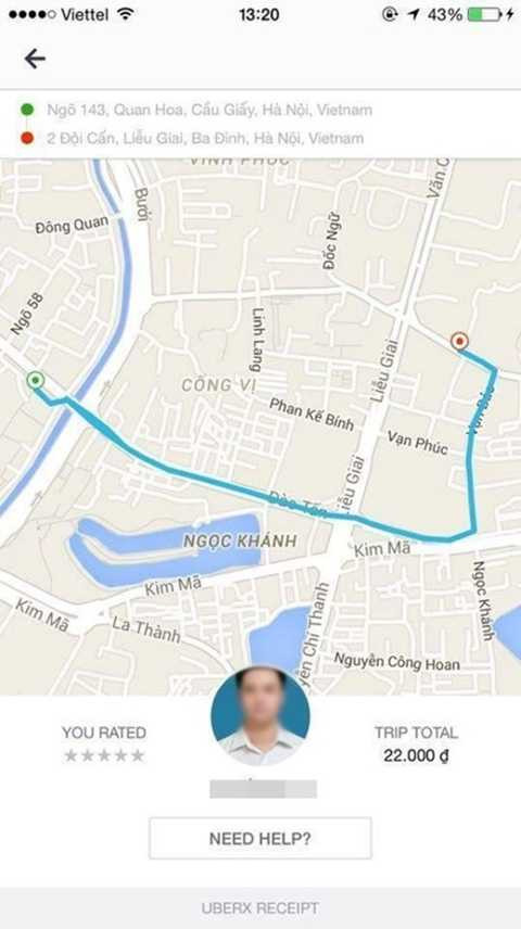 Cùng với thái độ kém văn minh, tài xế đi vòng vòng liên tục khiến khách hàng khó chịu. Chị M.Q đã quyết định đánh giá tài xế 1 sao (thang điểm đánh giá tài xế kém do Uber đề ra, từ 1 đến 5 sao).