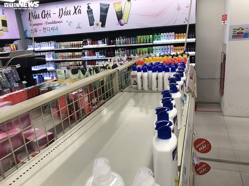 Theo ghi nhận của VTC News, tại một loạt siêu thị lớn như Vinmart, Lottemart, BigC... các mặt hàng khẩu trang, nước rửa tay khô đều trong tình trạng hết sạch, gian hàng vốn trưng bày những loại sản phẩm này được thay thế bằng các mặt hàng khác.