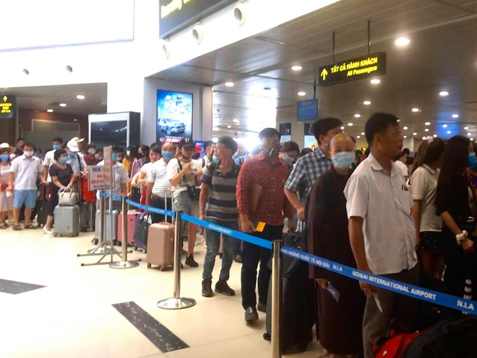 “Hơn cả tiếng đồng hồ, hàng người xếp hàng. Người lớn, con trẻ, người già... san sát, ngột ngạt, nhễ nhại, mồ hôi... mà vẫn phải thở. Từ ngoài vào thì tắc nghẽn vậy... Nhưng khi vào trong sân bay thì vắng tanh…”, một hành khách cho biết.