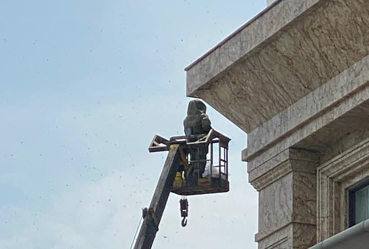 Thông tin từ đại diện khách sạn The Shine trên đường Lê Hồng Phong, phường Đông Khê, khoảng hơn 10h ngày 22/5, khách sạn thuê một đơn vị đưa công nhân đến phá dỡ tổ ong phía ngoài tường khách sạn.