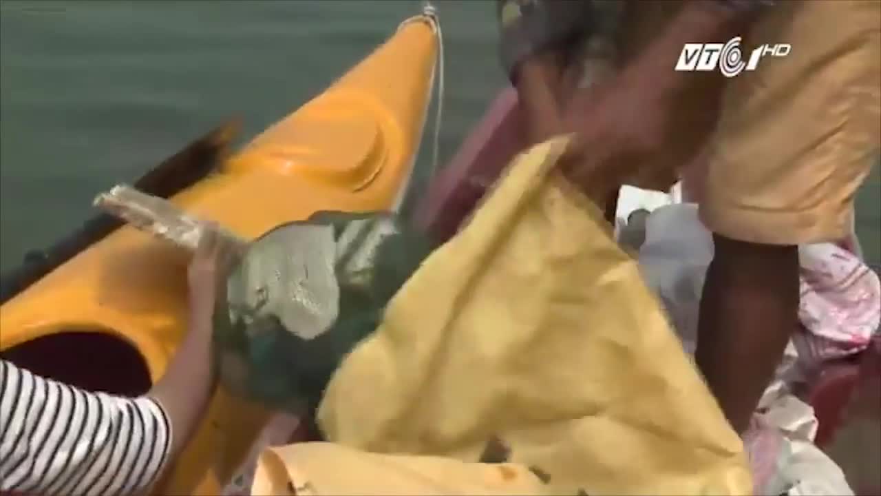 Khách tây bỏ tiền để được chèo thuyền vớt rác trên sông ở Hội An