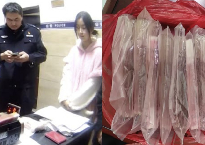 Trước sự chứng kiến của hai cô gái, cảnh sát đếm các bó tiền giấy mệnh giá 100 và 50 nhân dân tệ, xác định tổng cộng có tới 110 nghìn nhân dân tệ.