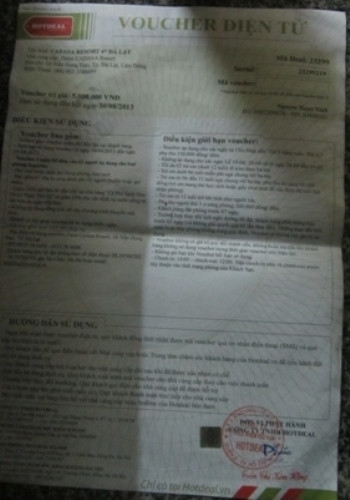 Cụ thể, chị Vinh cho biết: Gần cuối tháng 4/2013 vừa qua, chị Vinh có mua phiếu giảm giá Hotdeal nghỉ 3 ngày 2 đêm phòng superior tại resort Cadasa (TP Đà Lạt, Lâm Đồng) với trị giá 1.500.000 đồng so với 5.000.000 đồng giá trị chính thức.
