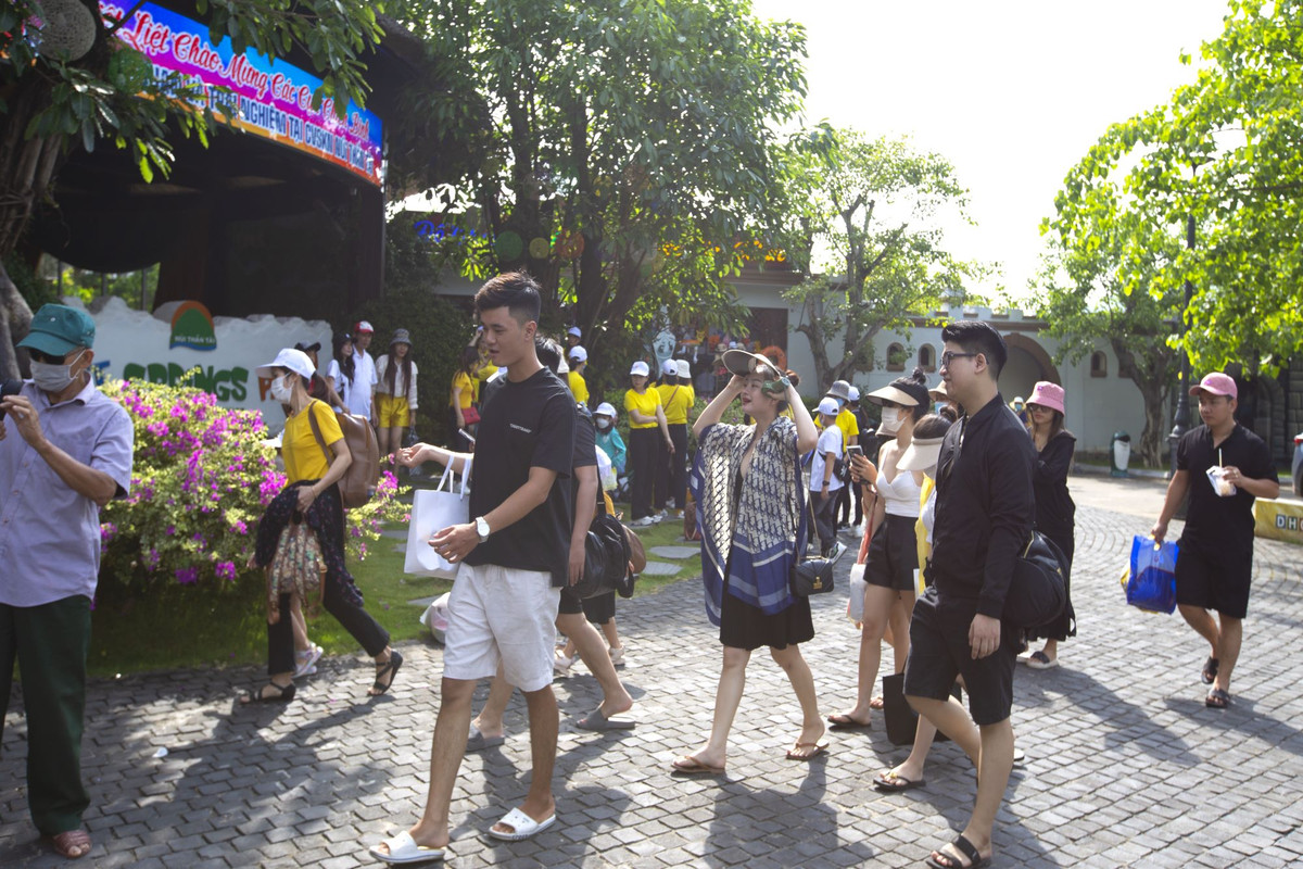 Khu du lịch Công viên suối khoáng nóng núi Thần Tài đông nghịt khách. Trong 3 ngày 29, 30/4 và 1/5, mỗi ngày khu du lịch này đón khoảng 7.000 - 8.000 lượt khách.