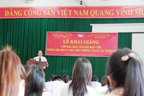 Cũng trong buổi lễ Thạc sĩ Kim Ngọc Anh (hiệu trưởng nhà trường CĐ PTTH 2) cho biết: “Lãnh đạo nhà trường CĐ PTTH II rất vinh dự được hợp tác với trường Đại học Xã hội và Nhân Văn Hà Nội để tổ chức lớp học liên thông đại học hệ vừa học vừa làm đầu tiên tại địa bàn TP.HCM cho các sinh viện đã tốt nghiệp hệ cao đẳng chuyên ngành Báo chí tại trường.”.