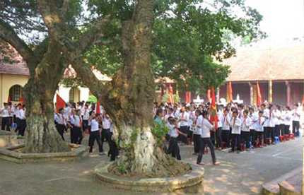 Cô Hoa cho biết, năm nay trường có hơn 500 học sinh/11 lớp, trung bình 46 học sinh/lớp. Học sinh ngày càng đông nhưng địa điểm thì không thể “nở” ra. Trường có 4 phòng học mái tôn nhưng không thể sửa chữa hoặc nâng cấp vì không được phép vượt chiều cao so với đình làng. Trước đây, vào mùa hè nóng quá, nhà trường phải lắp dàn phun sương ở 4 phòng học mái tôn. Tuy nhiên vài năm nay, các phòng học này đã được trang bị 2 máy điều hòa/phòng nên mát mẻ hơn nhiều. Vì quỹ đất ít nên các phòng chuyên môn của nhà trường cũng thiếu, còn học sinh thì bị hạn chế sân chơi, sân thể dục…
