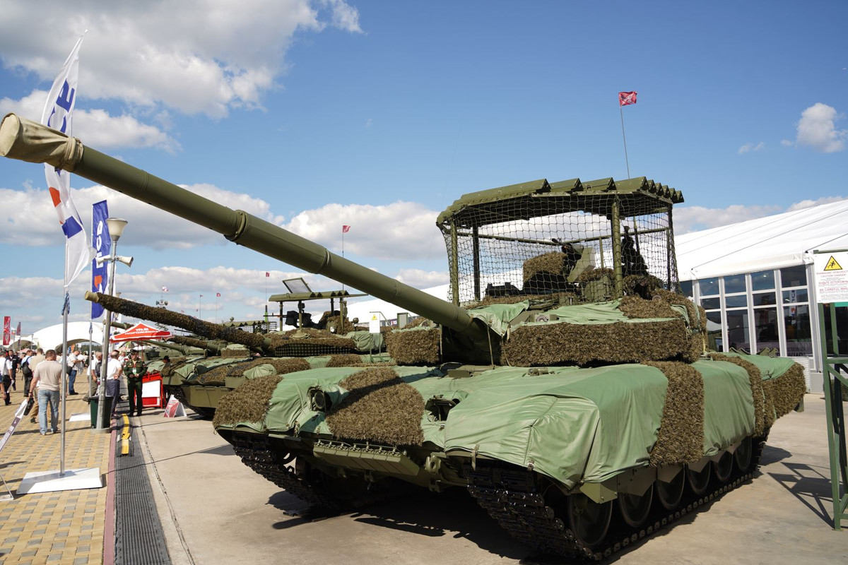 Xe tăng với các hệ thống chống UAV cảm tử được trưng bày tại Diễn đàn Kỹ thuật Quân sự - Army 2023. (Ảnh tư liệu: Duy Trinh/PV TTXVN tại Moskva)