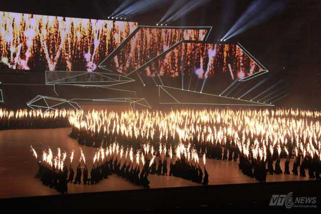 Màn trình diễn ánh sáng tuyệt hảo tạo nên tâm thế hào hứng cho phần diễu hành của 11 đoàn thể thao tham dự SEA Games lần thứ 27.