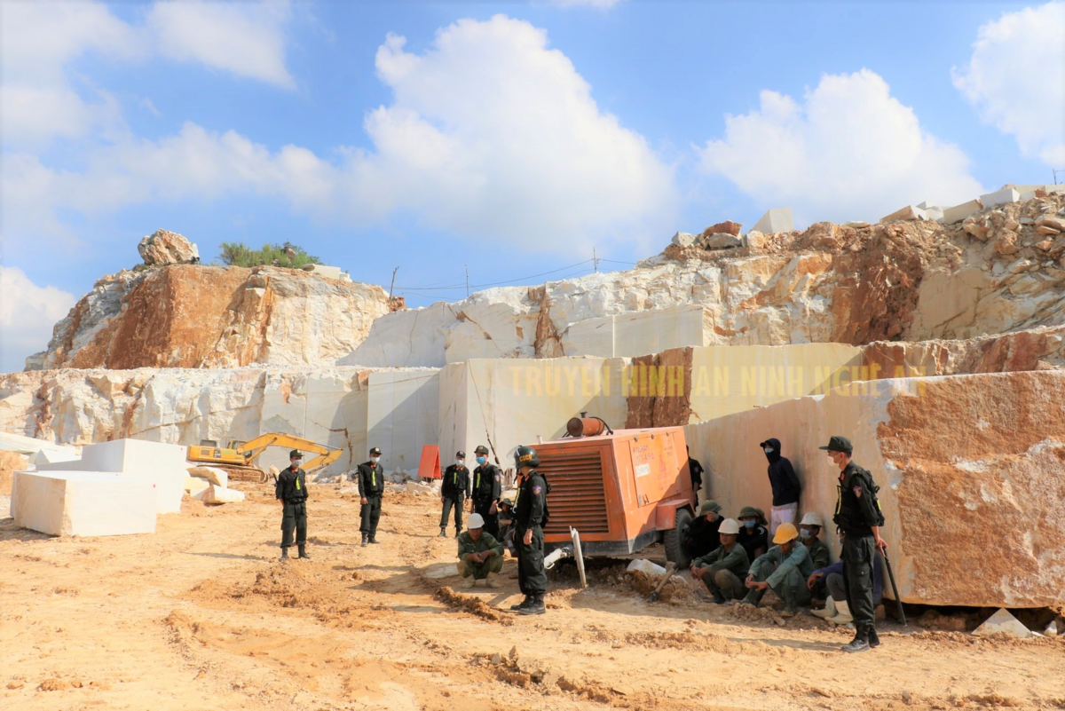 Lực lượng chức năng tạm giữ 5 máy xúc, 1 ô tô tải, 4 máy cắt đá, 2 máy làm hơi, 2 máy khoan đứng phục vụ cho hoạt động khai thác khoảng sản trái phép. Số lượng khoáng sản bị khai thác trái phép thu giữ tại hiện trường khoảng 800m3 đá trắng các loại, trị giá khoảng 3 tỷ đồng.
