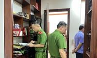 Cơ quan CSĐT công an tỉnh Lào Cai thực hiện khám xét nhà một bị can trong vụ án. (Ảnh: ANTV Lào Cai).
