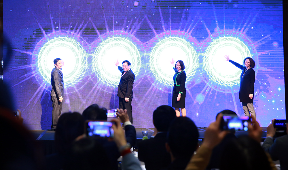 Phó Thủ tướng, Bộ trưởng Bộ Ngoại giao Phạm Bình Minh, Bộ trưởng Bộ Công Thương Trần Tuấn Anh, Giám đốc Quốc gia Ngân hàng Thế giới tại Việt Nam Carolyn Turk, Đại sứ Australia tại Việt Nam Robyn Mudie tham dự lễ khai trương.