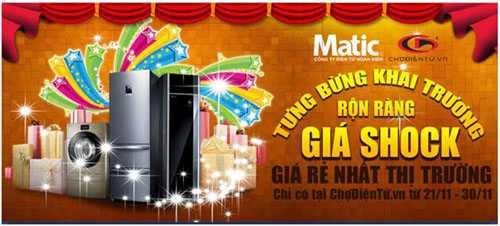 Chào mừng sự kiện trên và tri ân khách hàng, Điện máy Matic phối hợp với ChợĐiệnTử xây dựng chương trình “ Tưng bừng khai trương - rộn ràng giá shock”.
