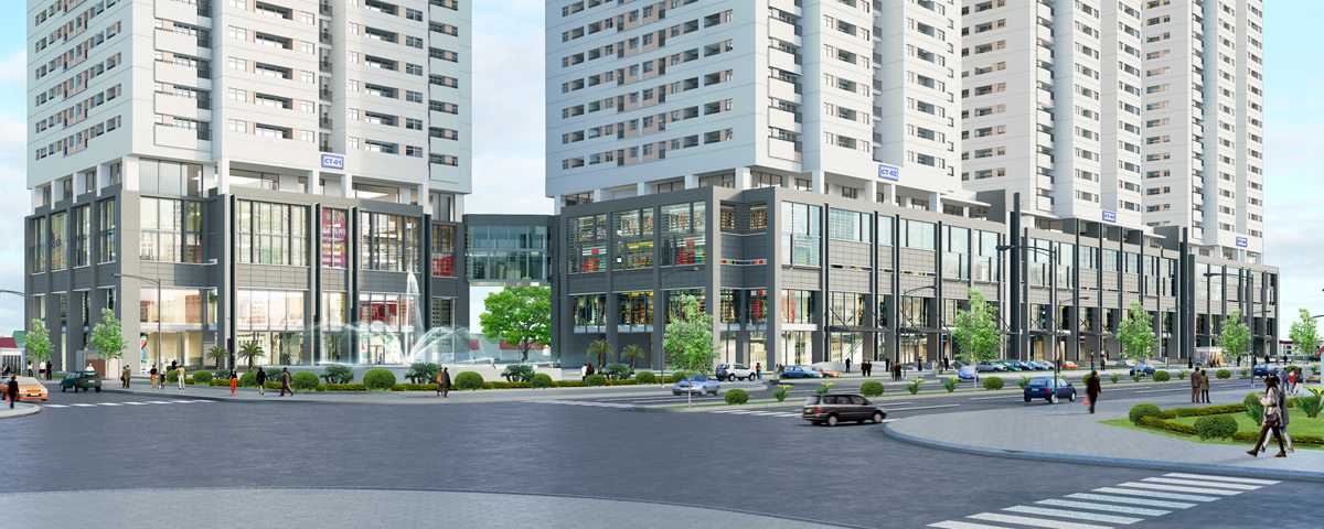 Toàn cảnh khối dịch vụ tiện ích và thương mại The Pride nhìn từ đường Lê Văn Lương kéo dài