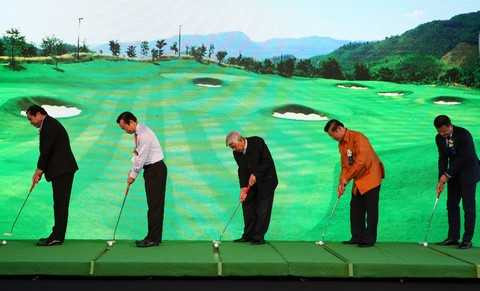2. Các đại biểu thực hiện nghi thức khai trương sân Golf.