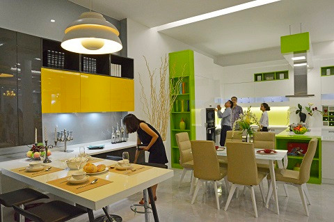 Điểm nhấn của showroom là hai căn hộ mẫu mang phong cách hiện đại, lịch lãm và sang trọng. Khi đứng trong căn hộ mẫu, khách hàng sẽ dễ dàng hình dung ra sự phối hợp hài hòa giữa các thiết kế trong không gian sống thật sự.