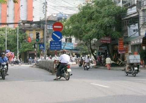 Xe buýt cũng đi thẳng nên nhiều xe đi theo. Nếu không hiểu biển báo hoặc làm theo mũi tên chỉ dẫn trên đường đi thẳng mà không rẽ phải vòng qua chân cột điện lập tức bị công an phường chặn xe xử lý vì đi vào đường cấm.