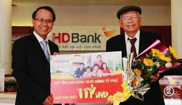 Cuối tuần qua, ngày 10/2/2017, tại Đắk Lắk, HDBank đã tiến hành trao 1 tỷ đồng cho ông Trần Văn Phùng - khách hàng tại Đắk Lắk gửi tiết kiệm trúng 1 tỷ đồng trong chương trình “Bếp ấm gia đình, nhà mình tỷ phú” do HDBank triển khai từ ngày diễn ra từ ngày 07/11/2016 đến ngày 06/01/2017.