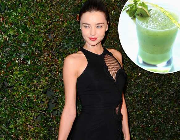 | Miranda Kerr: "Lý tưởng nhất là bắt đầu một ngày mới với một ly nước trái cây màu xanh gồm: hoa quả tươi ép với cải xoăn, dưa chuột, rau mùi tây, rau bina và chanh". |