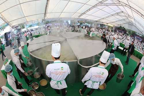 | Siêu lẩu với kích thước kỷ lục được tạo nên bởi hơn 300 đầu bếp Hà Thành |
