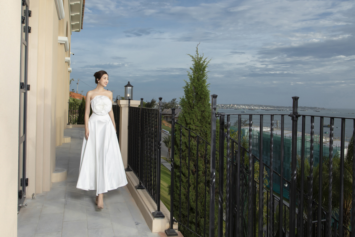 Khu Welcome Center mang phong cách Địa Trung Hải lãng mạn và sang trọng trở thành sàn diễn hoàn hảo để nàng hậu khoe dáng ngọc trong nhiều trang phục kiều diễm. Kiến trúc vòm cong đặc trưng của phong cách Tây Ban Nha cùng cửa sổ rộng lớn bao trọn tầm nhìn từ phía đồi ra vịnh biển xanh mát khiến Đỗ Mỹ Linh ngỡ ngàng như đang lạc vào một thành phố trời Âu cổ kính hoa lệ.