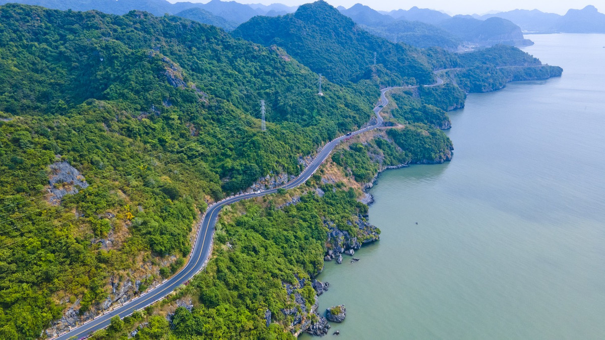 Tuyến đường ven biển Cát Bà có chiều dài khoảng 25km.
