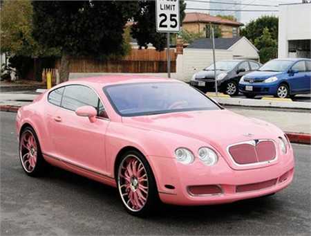 Paris Hilton nữ tính cùng chiếc xe màu hồng rất dễ thương trong khi cô Kim siêu vòng ba khiến nhiều người ghen tỵ khi sở hữu chiếc Bentley Continental cực sang.