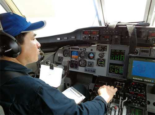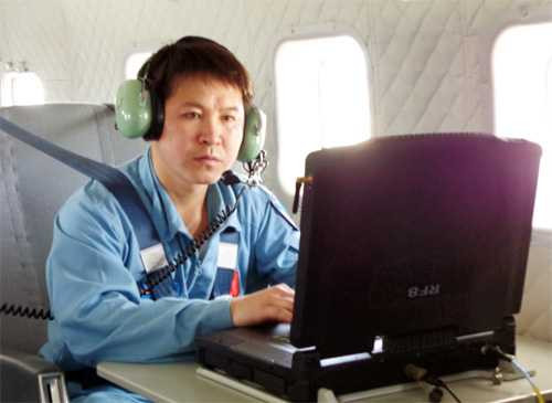 Thượng úy Lê Văn Đình- Nhân viên tuần thám đang làm việc trên máy bay trên vùng trời biển Thổ Chu. |