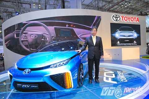 Mẫu xe với tên gọi Toyota Mirai (Mirai mang nghĩa “tương lai”) đã từng là món quà tặng của Toyota cho Thủ tướng Nhật Bản Shinzo Abe hồi đầu năm nay. Và ở Vietnam Motor Show 2015 đang diễn ra tại TP.HCM, người Việt đã có cơ hội tận mắt ngắm mẫu xe "siêu xanh" này của Toyota.Thật ra tên chính thức của xe là Toyota FCV (Fuel Cell Vehicle) - xe chạy bằng pin nhiên liệu hydro. Để tạo ra năng lượng, một bình phản ứng (fuel cell stack) gồm rất nhiều vách ngăn nhỏ, khí hydro khi luân chuyển qua các vách ngăn, sau đó kết hợp với khí oxy sẽ tạo nên một dòng điện truyền vào cụm pin và thải ra các phân tử nước.