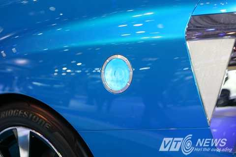 Vị trí đổ nhiên liệu hydrogen của xe Mirai, và chỉ mất 3 phút nạp nhiên liệu cho quãng đường 500km, nhanh hơn đổ xăng và xạc điện nhiều lần.
