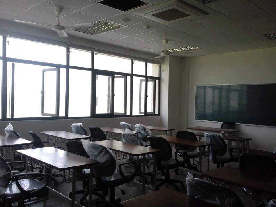 Một phòng học có 4 máy điều hòa. Nói chung là máy điều hòa ở khắp mọi nơi giống trung tâm thương mại.
