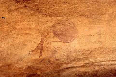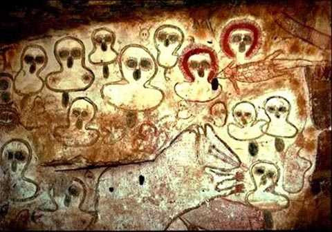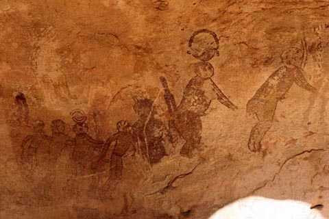 Những bức tranh khổng lồ được những người săn bắt hái lượm trong thời kỳ Round Head ở sa mạc Sahara vẽ nên. Đối tượng được các thổ dân họa lại là những người kỳ quái với phần đầu tròn và cơ thể không có hình dáng cụ thể, trôi nổi lềnh bềnh trong không gian, mặc những trang phục dị thường và đội những chiếc nón hệt như của các phi hành gia thời nay.