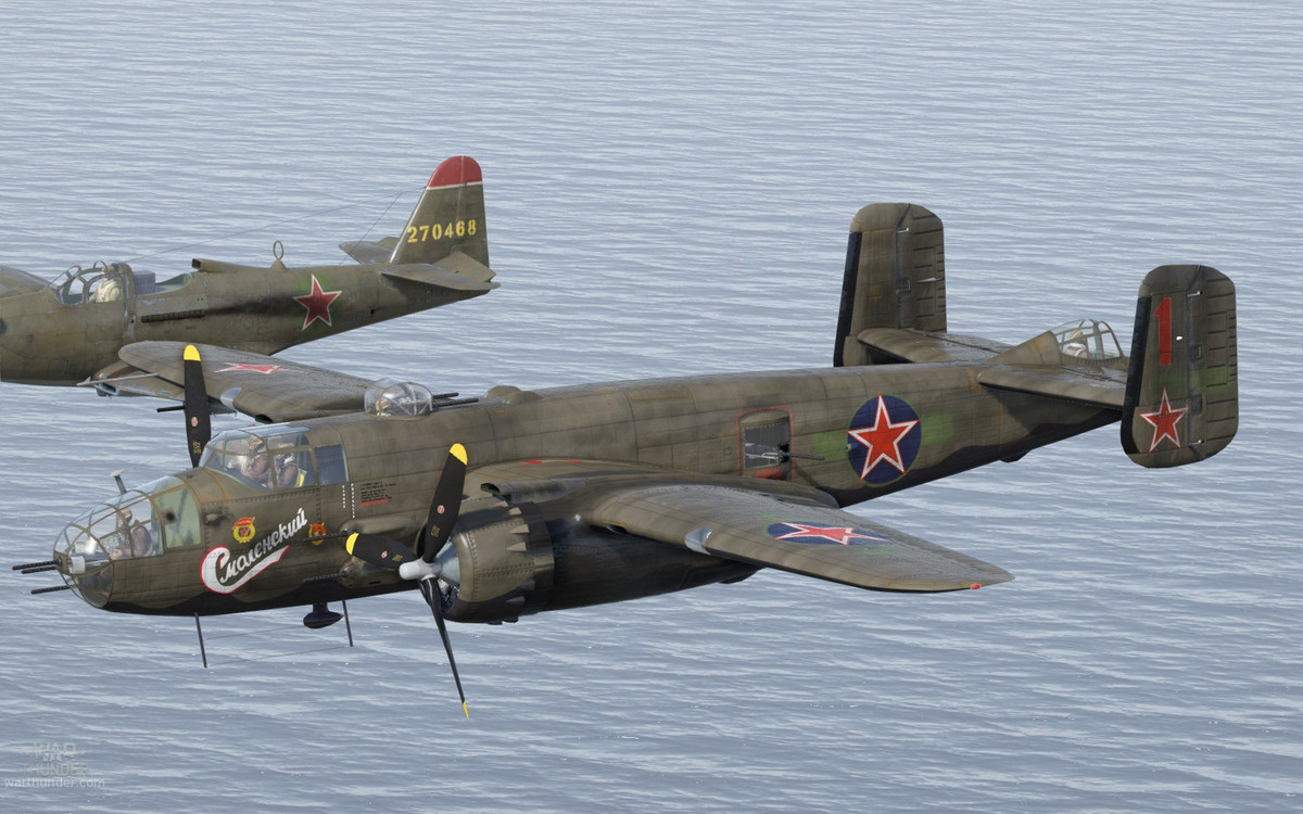 Những chiếc máy bay ném bom B-25 “Mitchell” đầu tiên của Mỹ đến Liên Xô vào năm 1942. Tổng cộng, Không quân Hồng quân đã nhận được khoảng 860 chiếc với các phiên bản khác nhau.