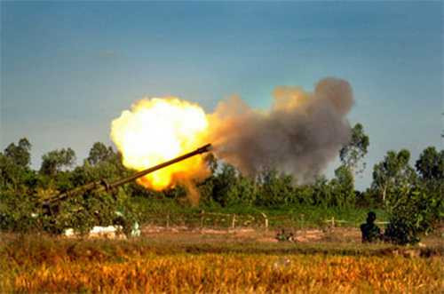 | Pháo M46 130mm khai hỏa trong cuộc diễn tập bắn đạn thật của Quân đội Nhân dân Việt Nam. |