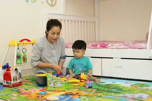 | Ốc Thanh Vân chơi cùng con trai. |