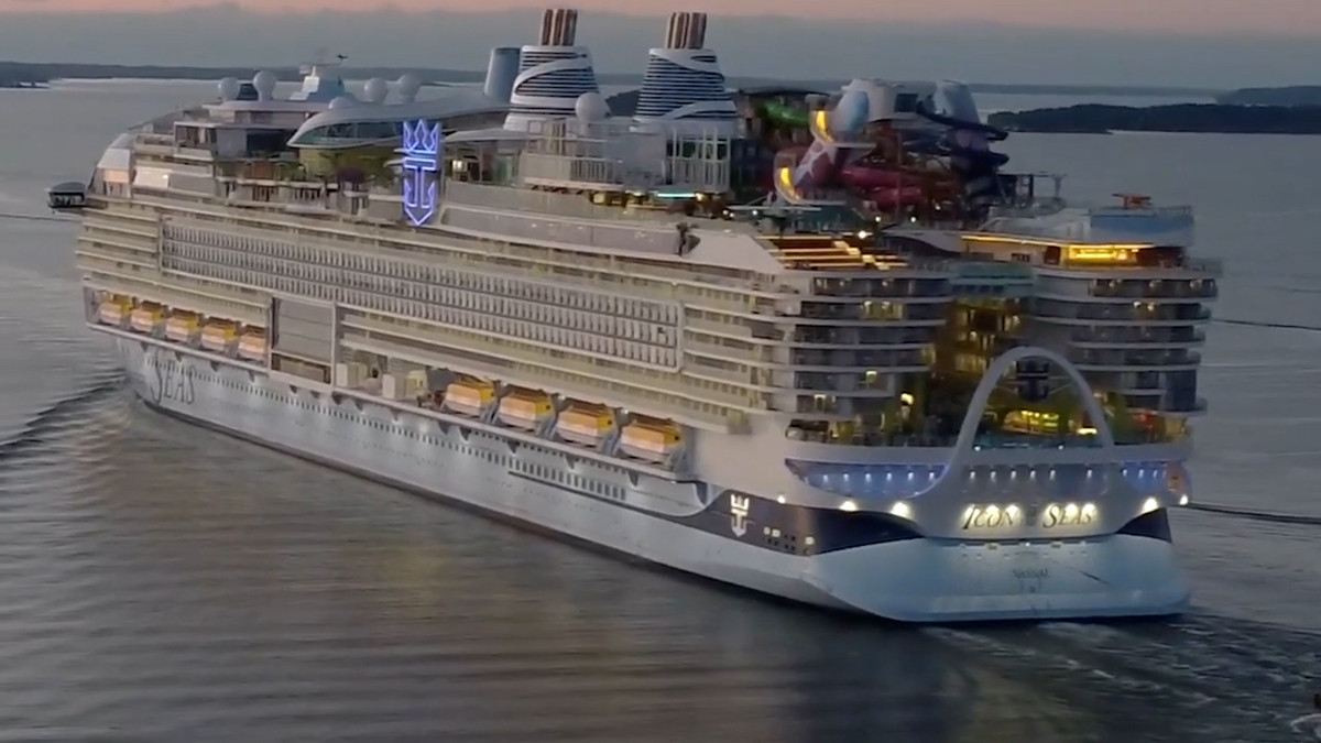 Icon of the Seas, siêu du thuyền lớn gấp 5 lần tàu Titanic, dài 365m, nặng 250.800 tấn đang hoàn thiện những chi tiết cuối cùng ở xưởng đóng tàu tại Phần Lan.