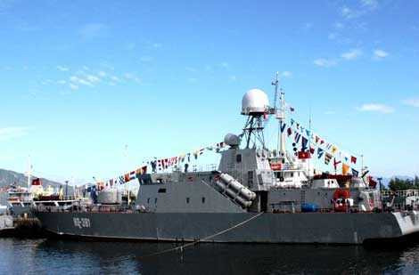 Tàu hộ tống tên lửa cỡ nhỏ BPS-500 mang số hiệu HQ-381 tại quân cảng Cam Ranh