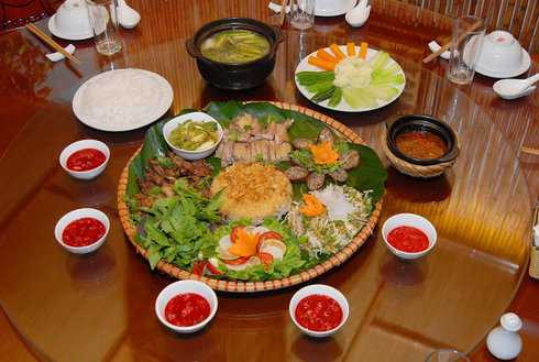 | Các món chim trời tại nhà hàng được trình bày trên mẹt lá chuối 'hút' mắt thực khách. |