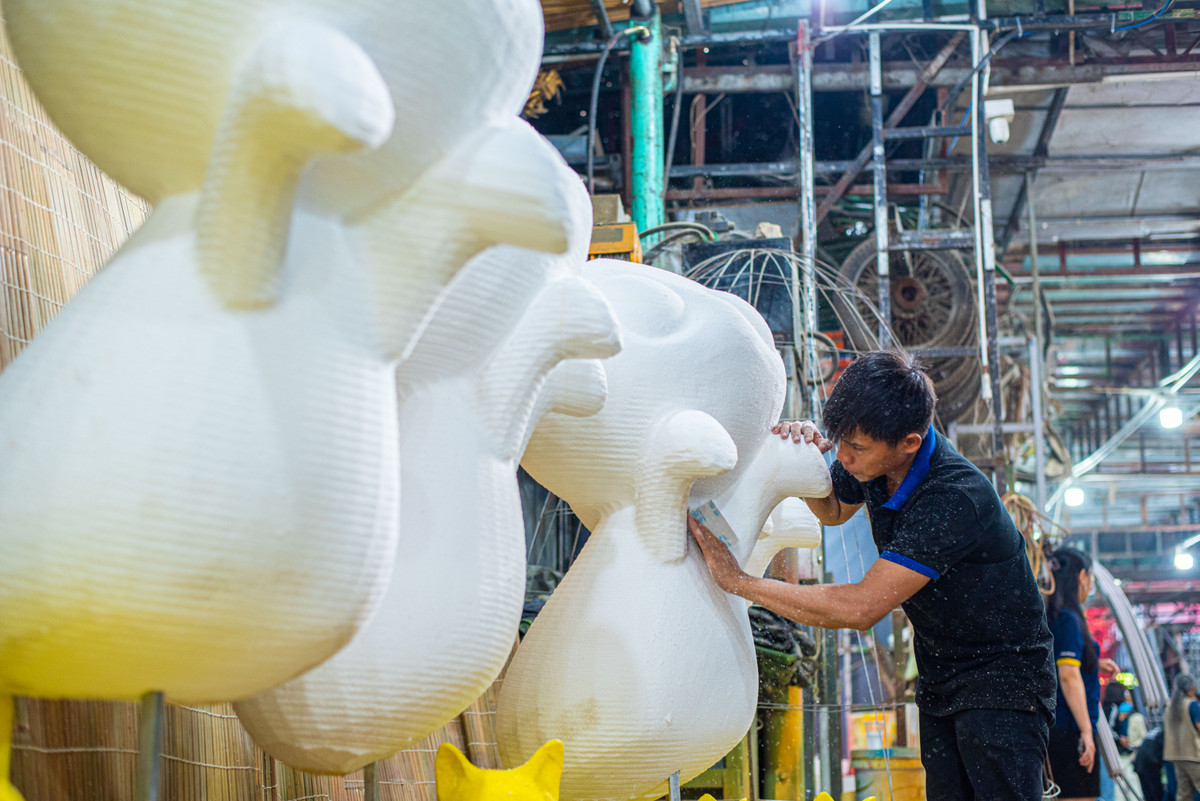 Khám phá xưởng tạo hình linh vật Mèo cho đường hoa Nguyễn Huệ