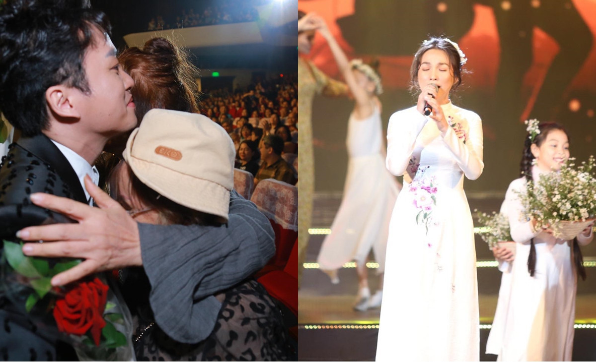 Tùng Dương tặng hoa, ôm chặt bà và mẹ của mình sau khi trình diễn ca khúc "Mẹ tôi".