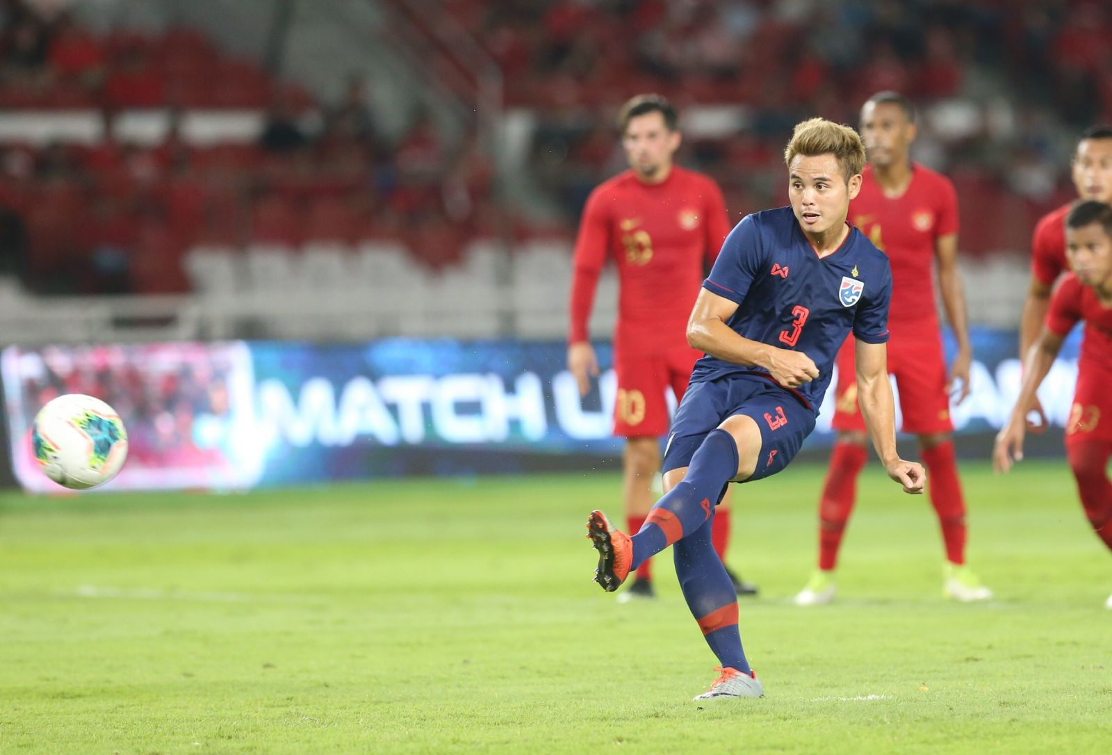 Cũng bởi vậy, Thái Lan nhập cuộc tự tin và kiểm soát bóng tốt hơn nhưng thiếu sự sắc sảo trong những tình huống cuối cùng. Họ có 4 cơ hội trong hiệp 1 nhưng 3 trong số đó bị thủ thành Indonesia phản xạ cứu thua, tình huống còn lại dứt điểm ra ngoài.